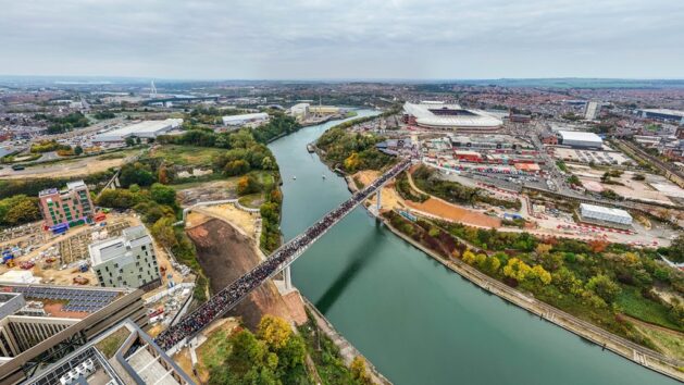 Sunderland fans travel to and from the Stadium of Light past the Vaux site over the new Keel Crossing. Credit: via Creo